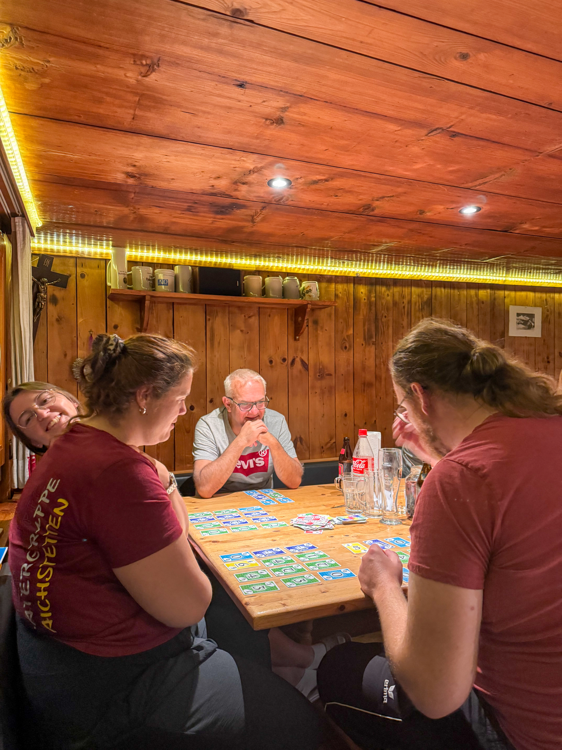 Schon bei der Ankunft war die Vorfreude groß. Endlich einmal Zeit, um abseits des Theateralltags gemeinsam durchzuatmen, Kraft zu tanken und den Teamgeist zu stärken. Und genau das haben wir getan: tagsüber beim Wandern in der Natur, abends beim Spielen, Kochen, Lachen und Singen bis spät in die Nacht. Begleitet von der Gitarre wurde so manches Lied angestimmt – und schnell war die richtige Hüttenstimmung da. 🎶