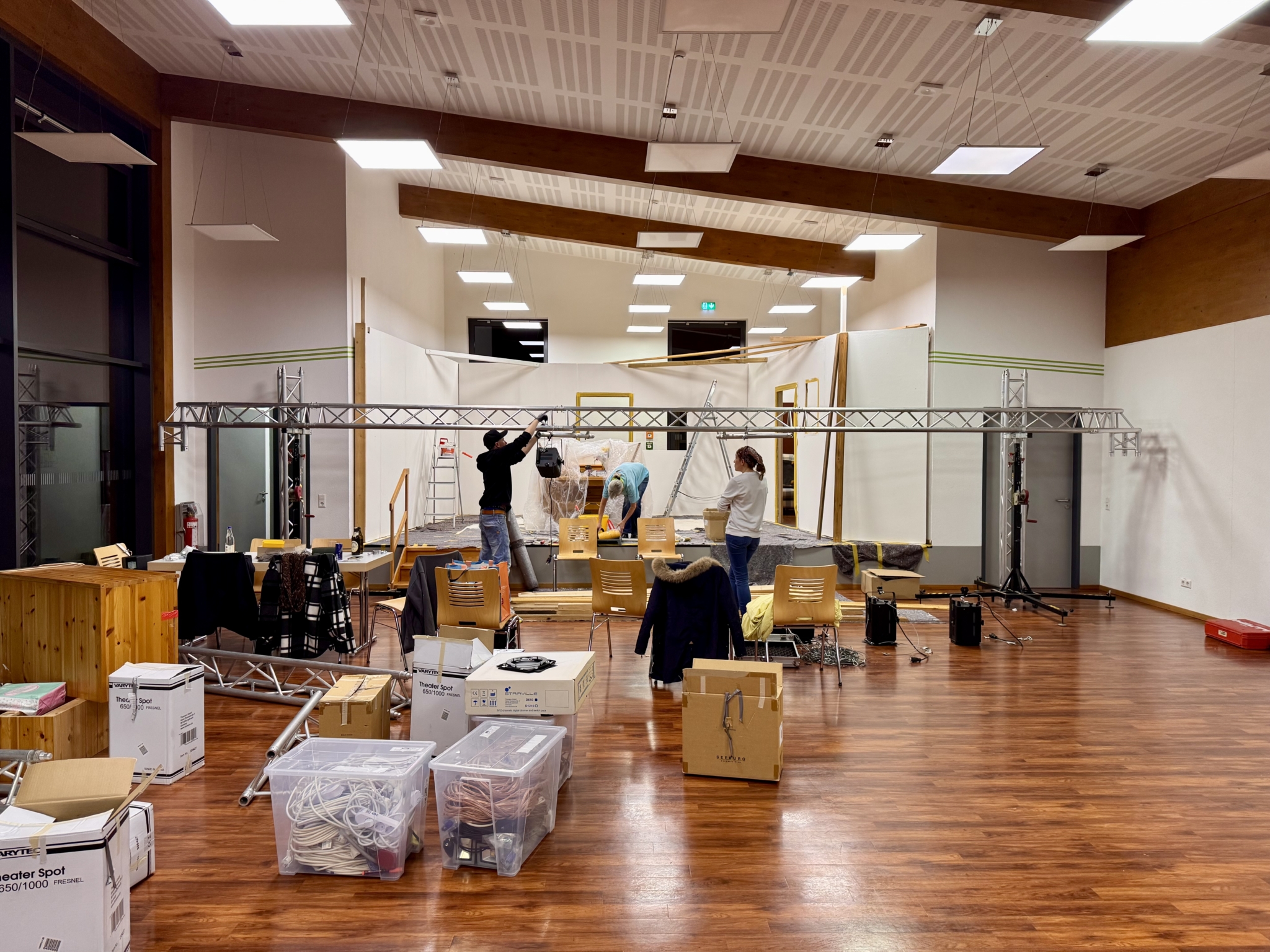 Der Umzug in die alternative Location erforderte von allen Beteiligten Höchstleistungen. Da dort kein gewohnter Vorhang vorhanden war, mussten wir unsere Bühnenkulissen völlig neu denken und an die Gegebenheiten anpassen. Besonders stolz sind wir darauf, dass wir unser Herzensprojekt mit den Kindern trotz des immensen organisatorischen Mehraufwands weitergeführt haben – die strahlenden Augen des Schauspielnachwuchses waren jede Mühe wert!